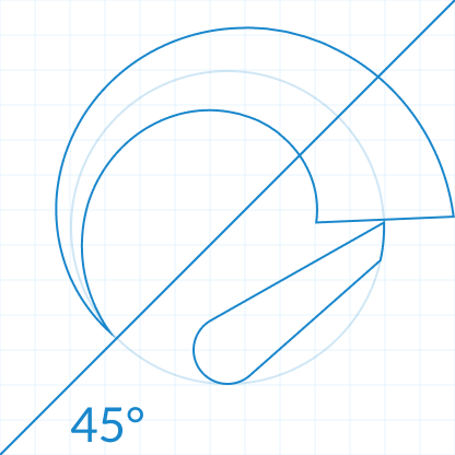 We then created a swish and rotated it until it started at the 45 degrees angle. Once the start of the swish location was final, we cut out the swish part that was extending beyond the main circle.